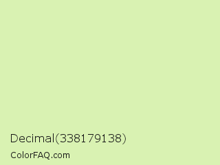 Decimal 338179138 Color is a very light green color and the nearest color is Caper #dcedb4. Hex code #d9f2b2 and RGB value is rgb(217,242,178). In RGB color space, this color is composed of 85% red, 95% green, 70% blue, In CMYK color space, this color is composed of 10% cyan, 0% magenta, 26% yellow , 5% black , In HSL color space, this color has a hue angle of 83° , 71% saturation and 82% lightness.