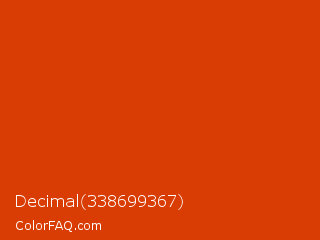 Decimal 338699367 Color is a normal orange color and the nearest color is Grenadier #d54600. Hex code #da3d03 and RGB value is rgb(218,61,3). In RGB color space, this color is composed of 85% red, 24% green, 1% blue, In CMYK color space, this color is composed of 0% cyan, 72% magenta, 99% yellow , 15% black , In HSL color space, this color has a hue angle of 16° , 97% saturation and 43% lightness.
