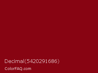Decimal 5420291686 Color is a dark red color and the nearest color is Red Devil #860111. Hex code #880412 and RGB value is rgb(136,4,18). In RGB color space, this color is composed of 53% red, 2% green, 7% blue, In CMYK color space, this color is composed of 0% cyan, 97% magenta, 87% yellow , 47% black , In HSL color space, this color has a hue angle of 354° , 94% saturation and 27% lightness.