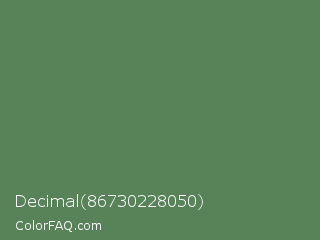 Decimal 86730228050 Color is a normal green color and the nearest color is Spring Leaves #578363. Hex code #588358 and RGB value is rgb(88,131,88). In RGB color space, this color is composed of 35% red, 51% green, 35% blue, In CMYK color space, this color is composed of 33% cyan, 0% magenta, 33% yellow , 49% black , In HSL color space, this color has a hue angle of 120° , 20% saturation and 43% lightness.