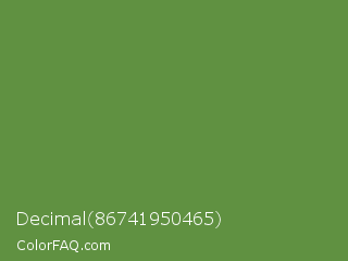 Decimal 86741950465 Color is a normal green color and the nearest color is Maximum Green #5e8c31. Hex code #609141 and RGB value is rgb(96,145,65). In RGB color space, this color is composed of 38% red, 57% green, 25% blue, In CMYK color space, this color is composed of 34% cyan, 0% magenta, 55% yellow , 43% black , In HSL color space, this color has a hue angle of 97° , 38% saturation and 41% lightness.