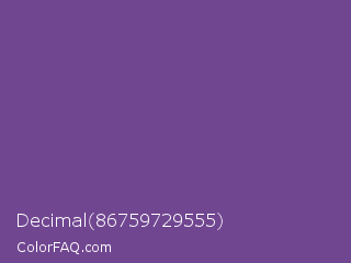 Decimal 86759729555 Color is a normal purple color and the nearest color is Affair #714693. Hex code #714691 and RGB value is rgb(113,70,145). In RGB color space, this color is composed of 44% red, 27% green, 57% blue, In CMYK color space, this color is composed of 22% cyan, 52% magenta, 0% yellow , 43% black , In HSL color space, this color has a hue angle of 274° , 35% saturation and 42% lightness.