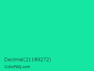 Decimal 21189272 Color is a normal green color and the nearest color is Medium Spring Green #00fa9a. Hex code #15e6a2 and RGB value is rgb(21,230,162). In RGB color space, this color is composed of 8% red, 90% green, 64% blue, In CMYK color space, this color is composed of 91% cyan, 0% magenta, 30% yellow , 10% black , In HSL color space, this color has a hue angle of 160° , 83% saturation and 49% lightness.