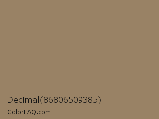 Decimal 86806509385 Color is a normal orange color and the nearest color is Beaver #9f8170. Hex code #998265 and RGB value is rgb(153,130,101). In RGB color space, this color is composed of 60% red, 51% green, 40% blue, In CMYK color space, this color is composed of 0% cyan, 15% magenta, 34% yellow , 40% black , In HSL color space, this color has a hue angle of 33° , 20% saturation and 50% lightness.
