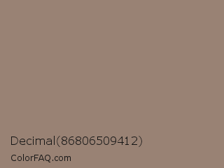 Decimal 86806509412 Color is a normal orange color and the nearest color is Cinereous #98817b. Hex code #998274 and RGB value is rgb(153,130,116). In RGB color space, this color is composed of 60% red, 51% green, 45% blue, In CMYK color space, this color is composed of 0% cyan, 15% magenta, 24% yellow , 40% black , In HSL color space, this color has a hue angle of 23° , 15% saturation and 53% lightness.