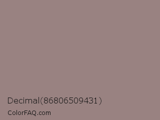 Decimal 86806509431 Color is a normal red color and the nearest color is Cinereous #98817b. Hex code #998281 and RGB value is rgb(153,130,129). In RGB color space, this color is composed of 60% red, 51% green, 51% blue, In CMYK color space, this color is composed of 0% cyan, 15% magenta, 16% yellow , 40% black , In HSL color space, this color has a hue angle of 2° , 11% saturation and 55% lightness.