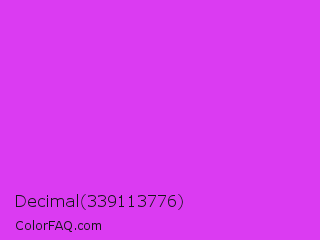 Decimal 339113776 Color is a normal magenta color and the nearest color is Steel Pink #cc33cc. Hex code #db3bf2 and RGB value is rgb(219,59,242). In RGB color space, this color is composed of 86% red, 23% green, 95% blue, In CMYK color space, this color is composed of 10% cyan, 76% magenta, 0% yellow , 5% black , In HSL color space, this color has a hue angle of 292° , 88% saturation and 59% lightness.