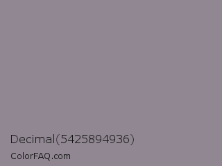 Decimal 5425894936 Color is a normal purple color and the nearest color is Venus #928590. Hex code #908792 and RGB value is rgb(144,135,146). In RGB color space, this color is composed of 56% red, 53% green, 57% blue, In CMYK color space, this color is composed of 1% cyan, 8% magenta, 0% yellow , 43% black , In HSL color space, this color has a hue angle of 289° , 5% saturation and 55% lightness.