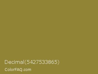 Decimal 5427533865 Color is a normal yellow color and the nearest color is Sycamore #908d39. Hex code #928435 and RGB value is rgb(146,132,53). In RGB color space, this color is composed of 57% red, 52% green, 21% blue, In CMYK color space, this color is composed of 0% cyan, 10% magenta, 64% yellow , 43% black , In HSL color space, this color has a hue angle of 51° , 47% saturation and 39% lightness.