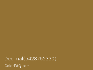 Decimal 5428765330 Color is a normal orange color and the nearest color is Metallic Sunburst #9c7c38. Hex code #947234 and RGB value is rgb(148,114,52). In RGB color space, this color is composed of 58% red, 45% green, 20% blue, In CMYK color space, this color is composed of 0% cyan, 23% magenta, 65% yellow , 42% black , In HSL color space, this color has a hue angle of 39° , 48% saturation and 39% lightness.