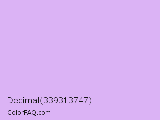 Decimal 339313747 Color is a very light purple color and the nearest color is Mauve #e0b0ff. Hex code #dbb3f5 and RGB value is rgb(219,179,245). In RGB color space, this color is composed of 86% red, 70% green, 96% blue, In CMYK color space, this color is composed of 11% cyan, 27% magenta, 0% yellow , 4% black , In HSL color space, this color has a hue angle of 276° , 77% saturation and 83% lightness.