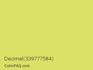 Decimal 339777584 Color is a light yellow color and the nearest color is Booger Buster #dde26a. Hex code #dbe066 and RGB value is rgb(219,224,102). In RGB color space, this color is composed of 86% red, 88% green, 40% blue, In CMYK color space, this color is composed of 2% cyan, 0% magenta, 54% yellow , 12% black , In HSL color space, this color has a hue angle of 62° , 66% saturation and 64% lightness.