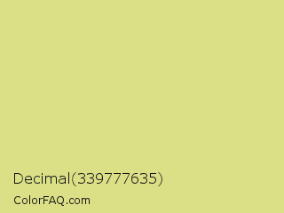 Decimal 339777635 Color is a light yellow color and the nearest color is Medium Spring Bud #c9dc87. Hex code #dbe087 and RGB value is rgb(219,224,135). In RGB color space, this color is composed of 86% red, 88% green, 53% blue, In CMYK color space, this color is composed of 2% cyan, 0% magenta, 40% yellow , 12% black , In HSL color space, this color has a hue angle of 63° , 59% saturation and 70% lightness.