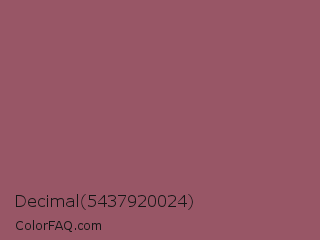 Decimal 5437920024 Color is a normal red color and the nearest color is Mauve Taupe #915f6d. Hex code #985666 and RGB value is rgb(152,86,102). In RGB color space, this color is composed of 60% red, 34% green, 40% blue, In CMYK color space, this color is composed of 0% cyan, 43% magenta, 33% yellow , 40% black , In HSL color space, this color has a hue angle of 345° , 28% saturation and 47% lightness.