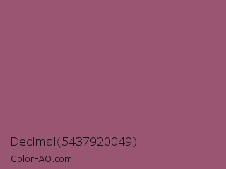 Decimal 5437920049 Color is a normal rose color and the nearest color is Rose Dust #9e5e6f. Hex code #985673 and RGB value is rgb(152,86,115). In RGB color space, this color is composed of 60% red, 34% green, 45% blue, In CMYK color space, this color is composed of 0% cyan, 43% magenta, 24% yellow , 40% black , In HSL color space, this color has a hue angle of 334° , 28% saturation and 47% lightness.