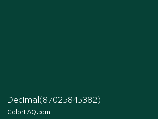 Decimal 87025845382 Color is a very dark cyan color and the nearest color is Sherwood Green #02402c. Hex code #064136 and RGB value is rgb(6,65,54). In RGB color space, this color is composed of 2% red, 25% green, 21% blue, In CMYK color space, this color is composed of 91% cyan, 0% magenta, 17% yellow , 75% black , In HSL color space, this color has a hue angle of 169° , 83% saturation and 14% lightness.