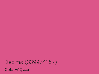 Decimal 339974167 Color is a normal rose color and the nearest color is Fandango Pink #de5285. Hex code #dc5589 and RGB value is rgb(220,85,137). In RGB color space, this color is composed of 86% red, 33% green, 54% blue, In CMYK color space, this color is composed of 0% cyan, 61% magenta, 38% yellow , 14% black , In HSL color space, this color has a hue angle of 337° , 66% saturation and 60% lightness.