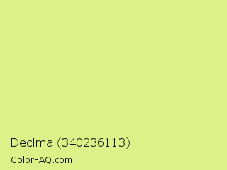 Decimal 340236113 Color is a light lime color and the nearest color is Mindaro #e3f988. Hex code #dcf187 and RGB value is rgb(220,241,135). In RGB color space, this color is composed of 86% red, 95% green, 53% blue, In CMYK color space, this color is composed of 9% cyan, 0% magenta, 44% yellow , 5% black , In HSL color space, this color has a hue angle of 72° , 79% saturation and 74% lightness.