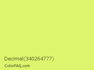 Decimal 340264777 Color is a light lime color and the nearest color is Booger Buster #dde26a. Hex code #dcf56d and RGB value is rgb(220,245,109). In RGB color space, this color is composed of 86% red, 96% green, 43% blue, In CMYK color space, this color is composed of 10% cyan, 0% magenta, 56% yellow , 4% black , In HSL color space, this color has a hue angle of 71° , 87% saturation and 69% lightness.