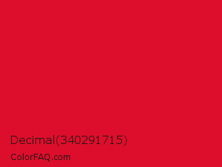 Decimal 340291715 Color is a normal red color and the nearest color is Medium Candy Apple Red #e2062c. Hex code #dd0e2b and RGB value is rgb(221,14,43). In RGB color space, this color is composed of 87% red, 5% green, 17% blue, In CMYK color space, this color is composed of 0% cyan, 94% magenta, 81% yellow , 13% black , In HSL color space, this color has a hue angle of 352° , 88% saturation and 46% lightness.