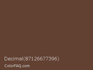 Decimal 87126677396 Color is a dark orange color and the nearest color is Quincy #623f2d. Hex code #624132 and RGB value is rgb(98,65,50). In RGB color space, this color is composed of 38% red, 25% green, 20% blue, In CMYK color space, this color is composed of 0% cyan, 34% magenta, 49% yellow , 62% black , In HSL color space, this color has a hue angle of 19° , 32% saturation and 29% lightness.