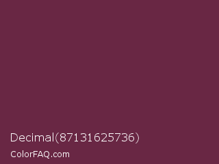 Decimal 87131625736 Color is a dark rose color and the nearest color is Tawny Port #692545. Hex code #692744 and RGB value is rgb(105,39,68). In RGB color space, this color is composed of 41% red, 15% green, 27% blue, In CMYK color space, this color is composed of 0% cyan, 63% magenta, 35% yellow , 59% black , In HSL color space, this color has a hue angle of 334° , 46% saturation and 28% lightness.