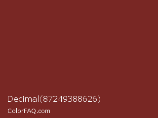 Decimal 87249388626 Color is a normal red color and the nearest color is Crown Of Thorns #771f1f. Hex code #792724 and RGB value is rgb(121,39,36). In RGB color space, this color is composed of 47% red, 15% green, 14% blue, In CMYK color space, this color is composed of 0% cyan, 68% magenta, 70% yellow , 53% black , In HSL color space, this color has a hue angle of 2° , 54% saturation and 31% lightness.