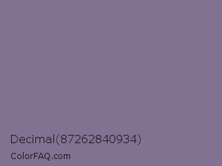 Decimal 87262840934 Color is a normal purple color and the nearest color is Mobster #7f7589. Hex code #837192 and RGB value is rgb(131,113,146). In RGB color space, this color is composed of 51% red, 44% green, 57% blue, In CMYK color space, this color is composed of 10% cyan, 23% magenta, 0% yellow , 43% black , In HSL color space, this color has a hue angle of 273° , 13% saturation and 51% lightness.