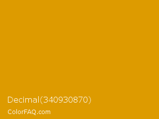 Decimal 340930870 Color is a normal orange color and the nearest color is Harvest Gold #da9100. Hex code #dd9b00 and RGB value is rgb(221,155,0). In RGB color space, this color is composed of 87% red, 61% green, 0% blue, In CMYK color space, this color is composed of 0% cyan, 30% magenta, 100% yellow , 13% black , In HSL color space, this color has a hue angle of 42° , 100% saturation and 43% lightness.