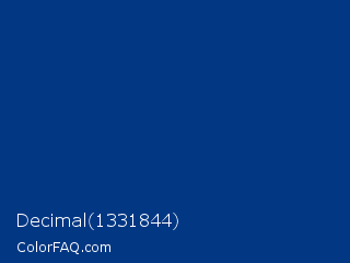 Decimal 1331844 Color is a dark blue color and the nearest color is Air Force Blue USAF #00308f. Hex code #023784 and RGB value is rgb(2,55,132). In RGB color space, this color is composed of 1% red, 22% green, 52% blue, In CMYK color space, this color is composed of 98% cyan, 58% magenta, 0% yellow , 48% black , In HSL color space, this color has a hue angle of 216° , 97% saturation and 26% lightness.