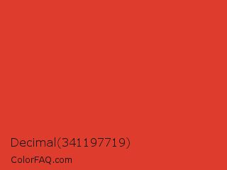 Decimal 341197719 Color is a normal red color and the nearest color is CG Red #e03c31. Hex code #de3c2d and RGB value is rgb(222,60,45). In RGB color space, this color is composed of 87% red, 24% green, 18% blue, In CMYK color space, this color is composed of 0% cyan, 73% magenta, 80% yellow , 13% black , In HSL color space, this color has a hue angle of 5° , 73% saturation and 52% lightness.