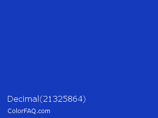 Decimal 21325864 Color is a normal blue color and the nearest color is Persian Blue #1c39bb. Hex code #163abc and RGB value is rgb(22,58,188). In RGB color space, this color is composed of 9% red, 23% green, 74% blue, In CMYK color space, this color is composed of 88% cyan, 69% magenta, 0% yellow , 26% black , In HSL color space, this color has a hue angle of 227° , 79% saturation and 41% lightness.