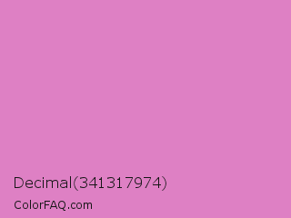 Decimal 341317974 Color is a light magenta color and the nearest color is Middle Purple #d982b5. Hex code #de80c4 and RGB value is rgb(222,128,196). In RGB color space, this color is composed of 87% red, 50% green, 77% blue, In CMYK color space, this color is composed of 0% cyan, 42% magenta, 12% yellow , 13% black , In HSL color space, this color has a hue angle of 317° , 59% saturation and 69% lightness.