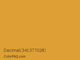 Decimal 341377028 Color is a normal orange color and the nearest color is Fire Bush #e89928. Hex code #dea034 and RGB value is rgb(222,160,52). In RGB color space, this color is composed of 87% red, 63% green, 20% blue, In CMYK color space, this color is composed of 0% cyan, 28% magenta, 77% yellow , 13% black , In HSL color space, this color has a hue angle of 38° , 72% saturation and 54% lightness.
