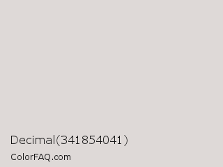 Decimal 341854041 Color is a very light orange color and the nearest color is Swiss Coffee #ddd6d5. Hex code #ded9d7 and RGB value is rgb(222,217,215). In RGB color space, this color is composed of 87% red, 85% green, 84% blue, In CMYK color space, this color is composed of 0% cyan, 2% magenta, 3% yellow , 13% black , In HSL color space, this color has a hue angle of 17° , 10% saturation and 86% lightness.