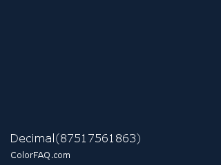Decimal 87517561863 Color is a very dark blue color and the nearest color is Firefly #0e2a30. Hex code #112137 and RGB value is rgb(17,33,55). In RGB color space, this color is composed of 7% red, 13% green, 22% blue, In CMYK color space, this color is composed of 69% cyan, 40% magenta, 0% yellow , 78% black , In HSL color space, this color has a hue angle of 215° , 53% saturation and 14% lightness.