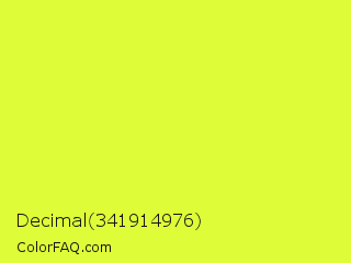 Decimal 341914976 Color is a normal yellow color and the nearest color is Starship #ecf245. Hex code #defc38 and RGB value is rgb(222,252,56). In RGB color space, this color is composed of 87% red, 99% green, 22% blue, In CMYK color space, this color is composed of 12% cyan, 0% magenta, 78% yellow , 1% black , In HSL color space, this color has a hue angle of 69° , 97% saturation and 60% lightness.