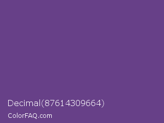 Decimal 87614309664 Color is a normal purple color and the nearest color is Affair #714693. Hex code #674088 and RGB value is rgb(103,64,136). In RGB color space, this color is composed of 40% red, 25% green, 53% blue, In CMYK color space, this color is composed of 24% cyan, 53% magenta, 0% yellow , 47% black , In HSL color space, this color has a hue angle of 273° , 36% saturation and 39% lightness.
