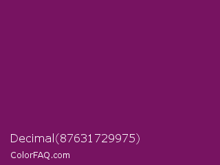 Decimal 87631729975 Color is a dark magenta color and the nearest color is French Plum #811453. Hex code #771361 and RGB value is rgb(119,19,97). In RGB color space, this color is composed of 47% red, 7% green, 38% blue, In CMYK color space, this color is composed of 0% cyan, 84% magenta, 18% yellow , 53% black , In HSL color space, this color has a hue angle of 313° , 72% saturation and 27% lightness.