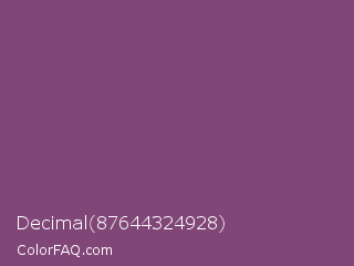 Decimal 87644324928 Color is a normal magenta color and the nearest color is Twilight Lavender #8a496b. Hex code #804678 and RGB value is rgb(128,70,120). In RGB color space, this color is composed of 50% red, 27% green, 47% blue, In CMYK color space, this color is composed of 0% cyan, 45% magenta, 6% yellow , 50% black , In HSL color space, this color has a hue angle of 308° , 29% saturation and 39% lightness.