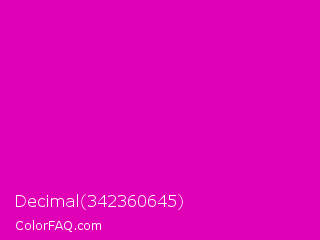 Decimal 342360645 Color is a normal magenta color and the nearest color is Hollywood Cerise #f400a1. Hex code #e000b5 and RGB value is rgb(224,0,181). In RGB color space, this color is composed of 88% red, 0% green, 71% blue, In CMYK color space, this color is composed of 0% cyan, 100% magenta, 19% yellow , 12% black , In HSL color space, this color has a hue angle of 312° , 100% saturation and 44% lightness.