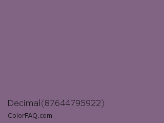 Decimal 87644795922 Color is a normal magenta color and the nearest color is Chinese Violet #856088. Hex code #816384 and RGB value is rgb(129,99,132). In RGB color space, this color is composed of 51% red, 39% green, 52% blue, In CMYK color space, this color is composed of 2% cyan, 25% magenta, 0% yellow , 48% black , In HSL color space, this color has a hue angle of 295° , 14% saturation and 45% lightness.