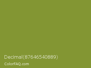Decimal 87646540889 Color is a normal lime color and the nearest color is Sycamore #908d39. Hex code #839633 and RGB value is rgb(131,150,51). In RGB color space, this color is composed of 51% red, 59% green, 20% blue, In CMYK color space, this color is composed of 13% cyan, 0% magenta, 66% yellow , 41% black , In HSL color space, this color has a hue angle of 72° , 49% saturation and 39% lightness.