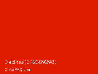 Decimal 342389298 Color is a normal red color and the nearest color is Rosso Corsa #d40000. Hex code #e01c00 and RGB value is rgb(224,28,0). In RGB color space, this color is composed of 88% red, 11% green, 0% blue, In CMYK color space, this color is composed of 0% cyan, 88% magenta, 100% yellow , 12% black , In HSL color space, this color has a hue angle of 8° , 100% saturation and 44% lightness.