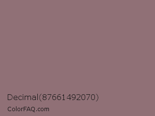 Decimal 87661492070 Color is a normal red color and the nearest color is Opium #8e6f70. Hex code #907076 and RGB value is rgb(144,112,118). In RGB color space, this color is composed of 56% red, 44% green, 46% blue, In CMYK color space, this color is composed of 0% cyan, 22% magenta, 18% yellow , 44% black , In HSL color space, this color has a hue angle of 349° , 13% saturation and 50% lightness.