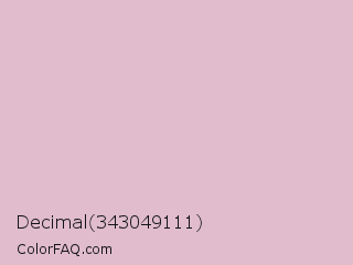 Decimal 343049111 Color is a very light rose color and the nearest color is Pink Flare #e1c0c8. Hex code #e0bccd and RGB value is rgb(224,188,205). In RGB color space, this color is composed of 88% red, 74% green, 80% blue, In CMYK color space, this color is composed of 0% cyan, 16% magenta, 8% yellow , 12% black , In HSL color space, this color has a hue angle of 332° , 37% saturation and 81% lightness.
