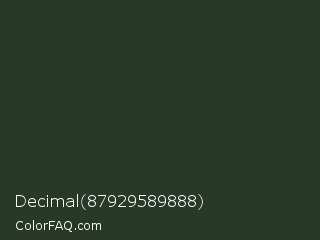 Decimal 87929589888 Color is a very dark green color and the nearest color is Black Leather Jacket #253529. Hex code #283928 and RGB value is rgb(40,57,40). In RGB color space, this color is composed of 16% red, 22% green, 16% blue, In CMYK color space, this color is composed of 30% cyan, 0% magenta, 30% yellow , 78% black , In HSL color space, this color has a hue angle of 120° , 18% saturation and 19% lightness.
