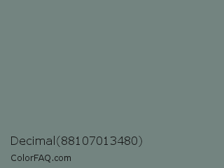 Decimal 88107013480 Color is a normal cyan color and the nearest color is Blue Smoke #748881. Hex code #738480 and RGB value is rgb(115,132,128). In RGB color space, this color is composed of 45% red, 52% green, 50% blue, In CMYK color space, this color is composed of 13% cyan, 0% magenta, 3% yellow , 48% black , In HSL color space, this color has a hue angle of 166° , 7% saturation and 48% lightness.