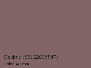 Decimal 88122806547 Color is a normal red color and the nearest color is Falcon #7f626d. Hex code #816569 and RGB value is rgb(129,101,105). In RGB color space, this color is composed of 51% red, 40% green, 41% blue, In CMYK color space, this color is composed of 0% cyan, 22% magenta, 19% yellow , 49% black , In HSL color space, this color has a hue angle of 351° , 12% saturation and 45% lightness.
