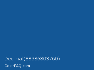 Decimal 88386803760 Color is a normal blue color and the nearest color is Yale Blue #0f4d92. Hex code #135796 and RGB value is rgb(19,87,150). In RGB color space, this color is composed of 7% red, 34% green, 59% blue, In CMYK color space, this color is composed of 87% cyan, 42% magenta, 0% yellow , 41% black , In HSL color space, this color has a hue angle of 209° , 78% saturation and 33% lightness.